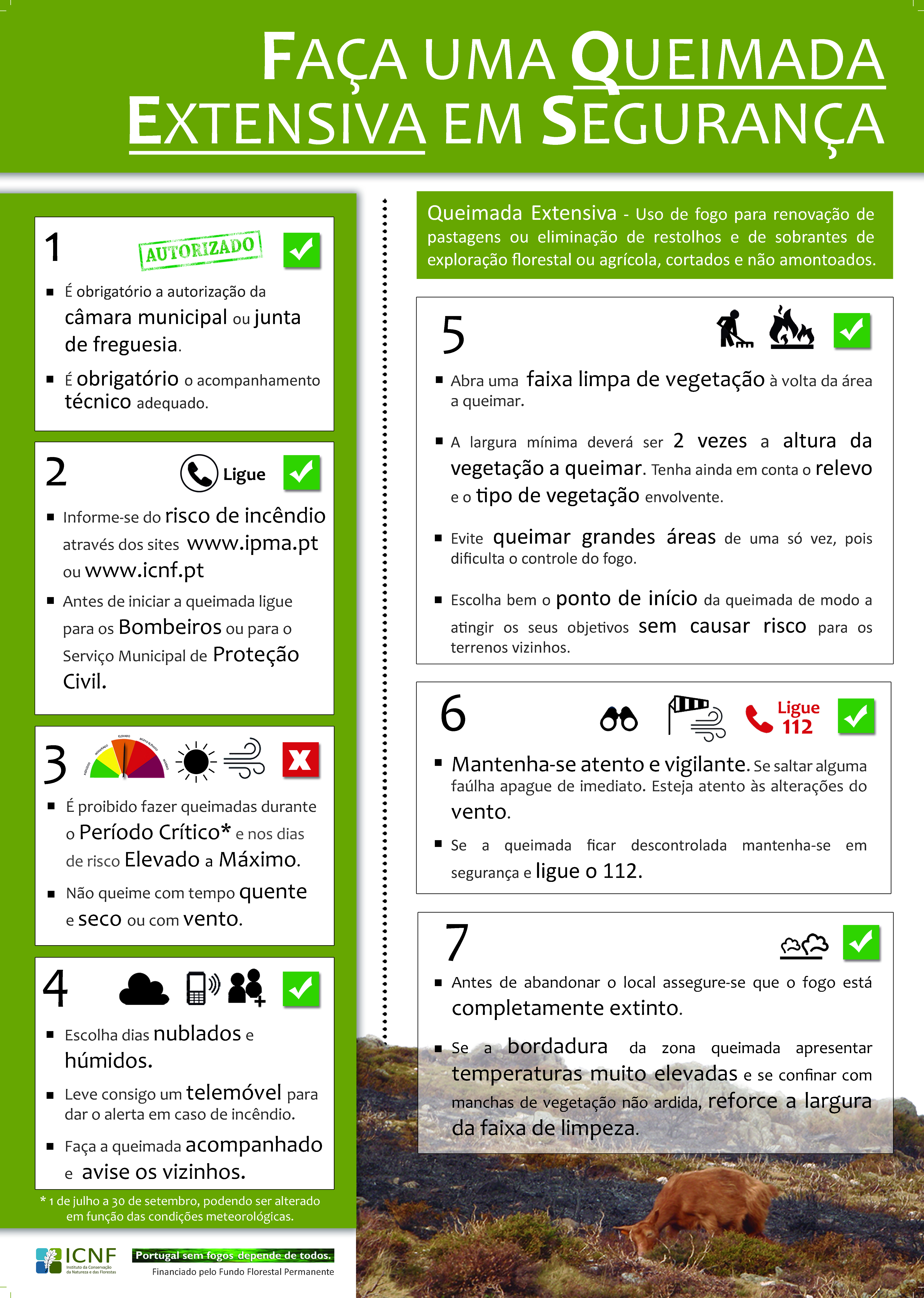 Fora do período crítico e desde que o risco de incêndio seja inferior ao nível Muito Elevado. Está sujeita a uma comunicação prévia e é obrigatória por Lei, deve ser efetuada com a antecedência mínima de 24 horas.